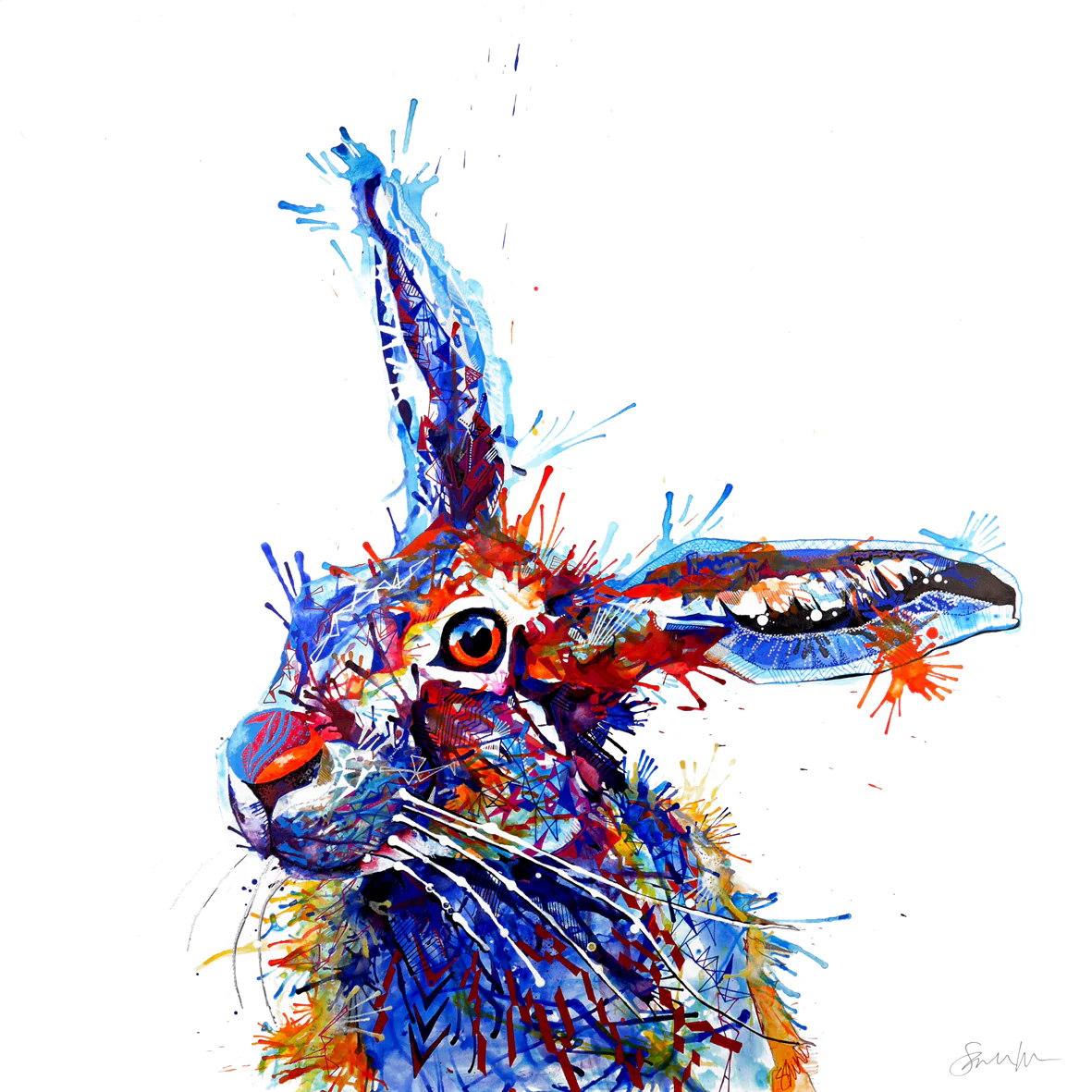 A happy hoppy framed hare canvas, with iconic ears, and bright colours! This handsome fellow needs no introduction, the icon himself, the one they all look up to, the prince of hare style and finesse. Barnaby’s roguish charm and devilishly good looks set hearts on fire, look into his eyes and just feel yourself melt.
